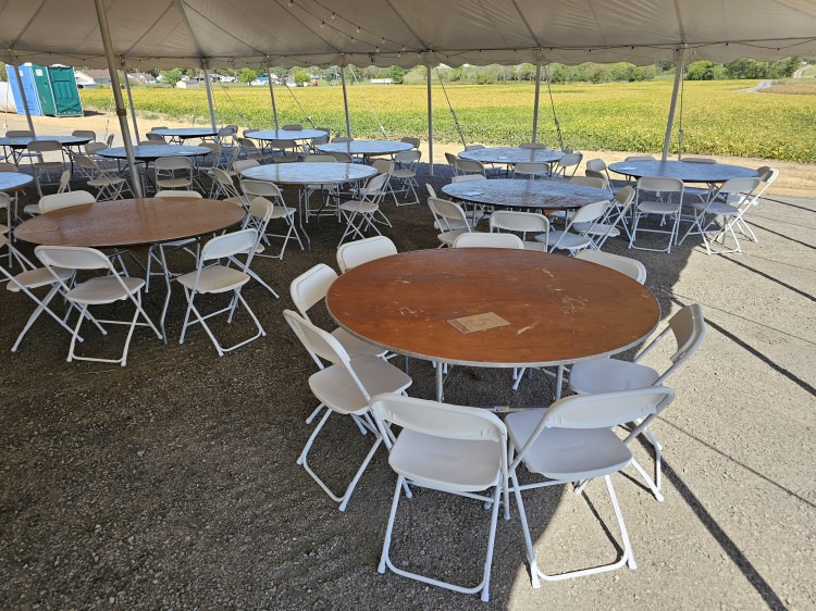 Seating: Includes 4 Tables (Choice of Round or Rectangular) and 32 White Folding Chairs.